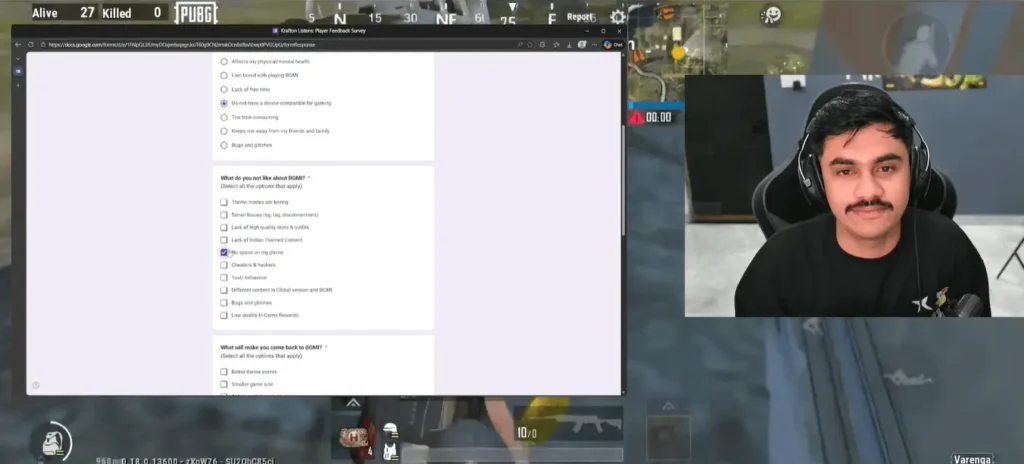 This question is remarkably direct. Krafton is testing whether file size is a genuine barrier or just an excuse. Selecting “Smaller game size” validates that this is a real issue affecting your ability to play.